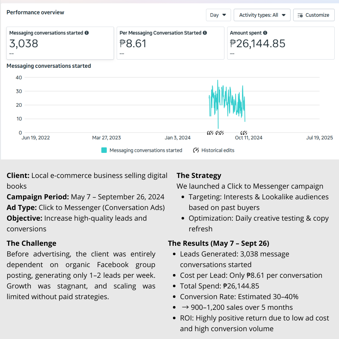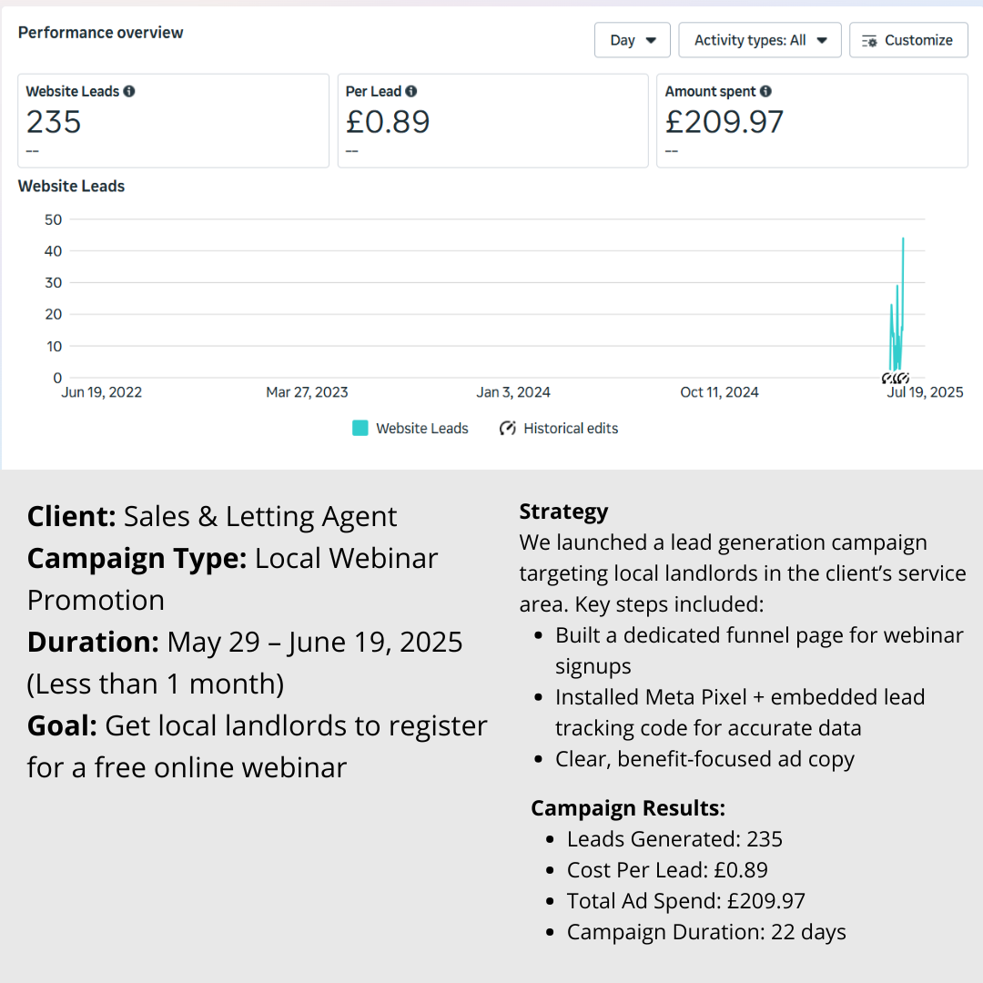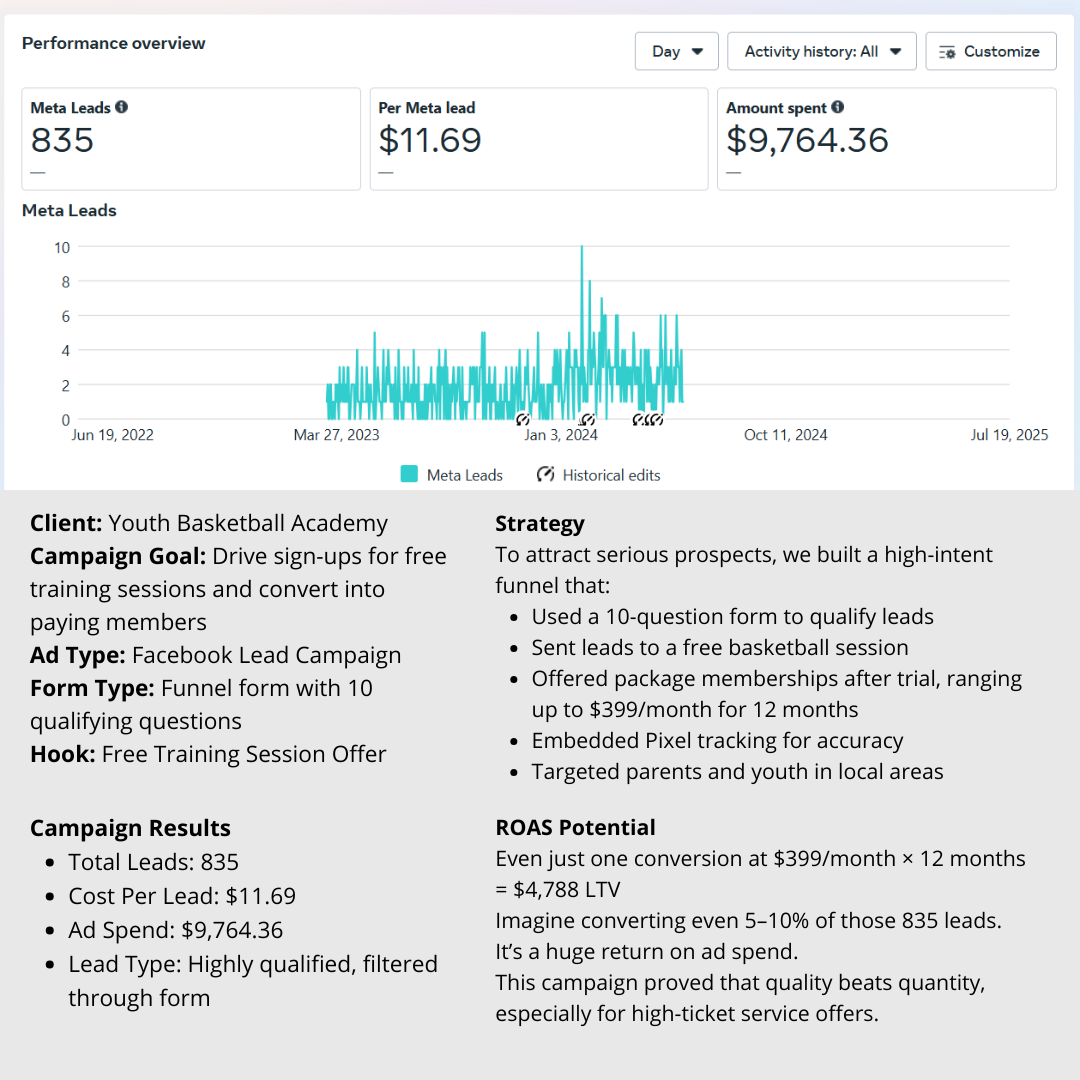 This report helped the client monitor ad performance in real time and confidently decide on scaling. It showed exactly how much we were spending each month and how many sales we were converting, crucial for maintaining profitability.